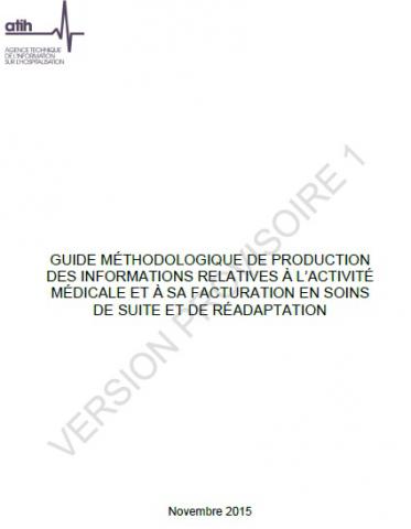 L’ATIH vient de diffuser sur son site Internet la version provisoire du Guide méthodologique de production des informations relatives à l'activité médicale et à sa facturation en soins de suite et de réadaptation applicable à partir du 4 janvier 2016, accompagné d’une notice technique.
