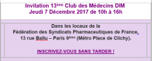 La FHP-MCO organise la 13ème réunion du « Club des médecins DIM » du secteur privé le Jeudi 7 Décembre de 10h à 16h dans les locaux de la Fédération des Syndicats Pharmaceutiques de France, 13 rue Ballu – Paris 9ème (Métro Place de Clichy). L’accueil débutera dès 9h.